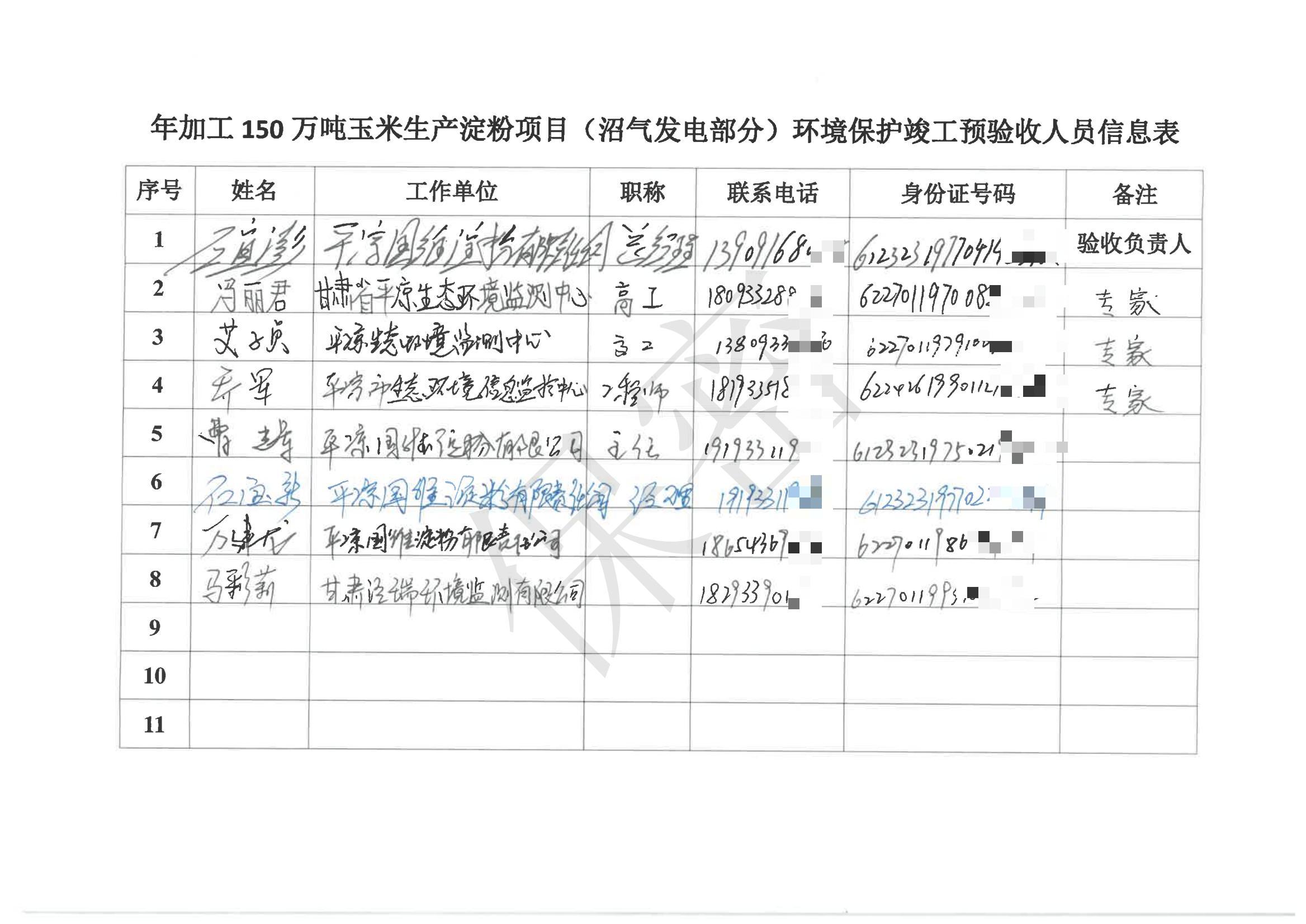 平?jīng)鰢S淀粉有限責任公司年加工150萬噸玉米生產(chǎn)淀粉項目(沼氣發(fā)電部分)竣工環(huán)保驗收公示