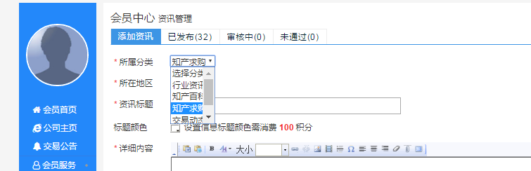在求購頁面請根據(jù)您的需求選擇分類(知產(chǎn)求購),然后輸入求購關(guān)鍵字、用途、預(yù)算、類別、詳細描述、聯(lián)系方式即可提交發(fā)布需求。