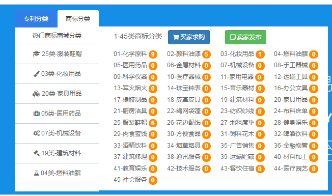 3.您也可以直接進入專利商城或者商標(biāo)商城,直接在商城里通過關(guān)鍵字搜索,或者通過類別查找,亦或者直接瀏覽平臺推薦,找到合適自己的專利商標(biāo);