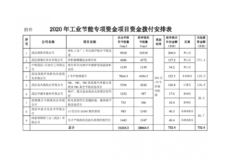 2020年工業(yè)節(jié)能專項資金撥付公告